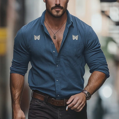 The Men's Vintage Butterfly Embroidered Shirt is a perfect blend of timeless elegance and modern style. Crafted from a luxurious cotton and linen blend, this long-sleeved shirt promises both comfort and durability. The intricate butterfly embroidery adds a refined touch that sets it apart from standard shirts.
