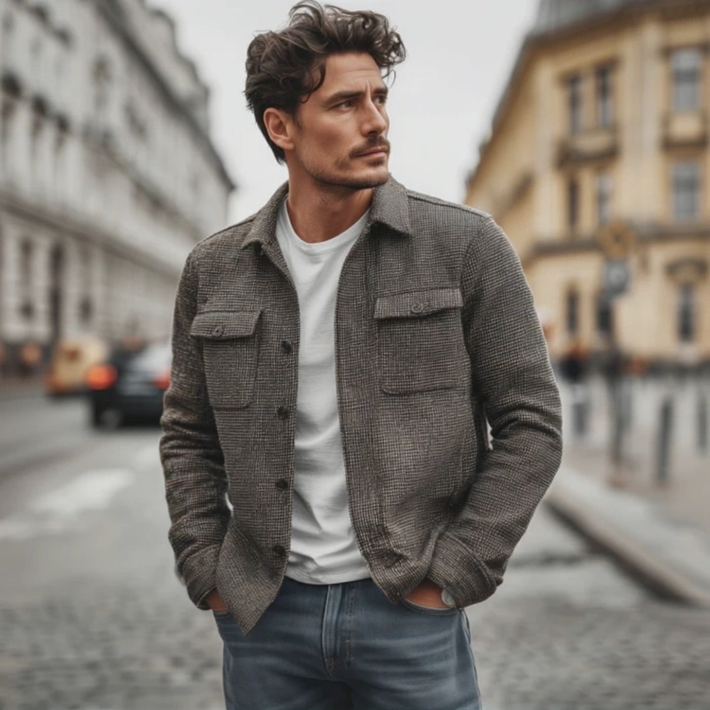 Herreskjortejakken med vintage-rutemønster og slag, enkeltspent, klafflomme og løs langermet erme kombinerer tidløs vintage-estetikk med moderne komfort. Det særegne rutemønsteret, det klassiske slaget og den avslappede passformen gjør den til et essensielt tilskudd til enhver avslappet eller smart-casual garderobe. Enten den brukes lag på lag eller alene, tilbyr denne skjortejakken en unik blanding av stil, komfort og praktisk anvendelighet som passer for ulike anledninger og årstider.