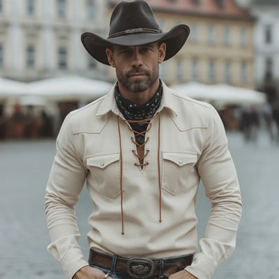 Design: V-neck with tie-up detailing, adding a unique cowboy-inspired look.