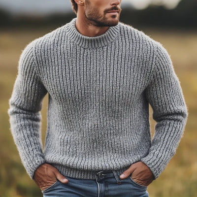 Men's Winter Retro Cotton Yarn Knit Crew Neck Sweater MTA0469K0P