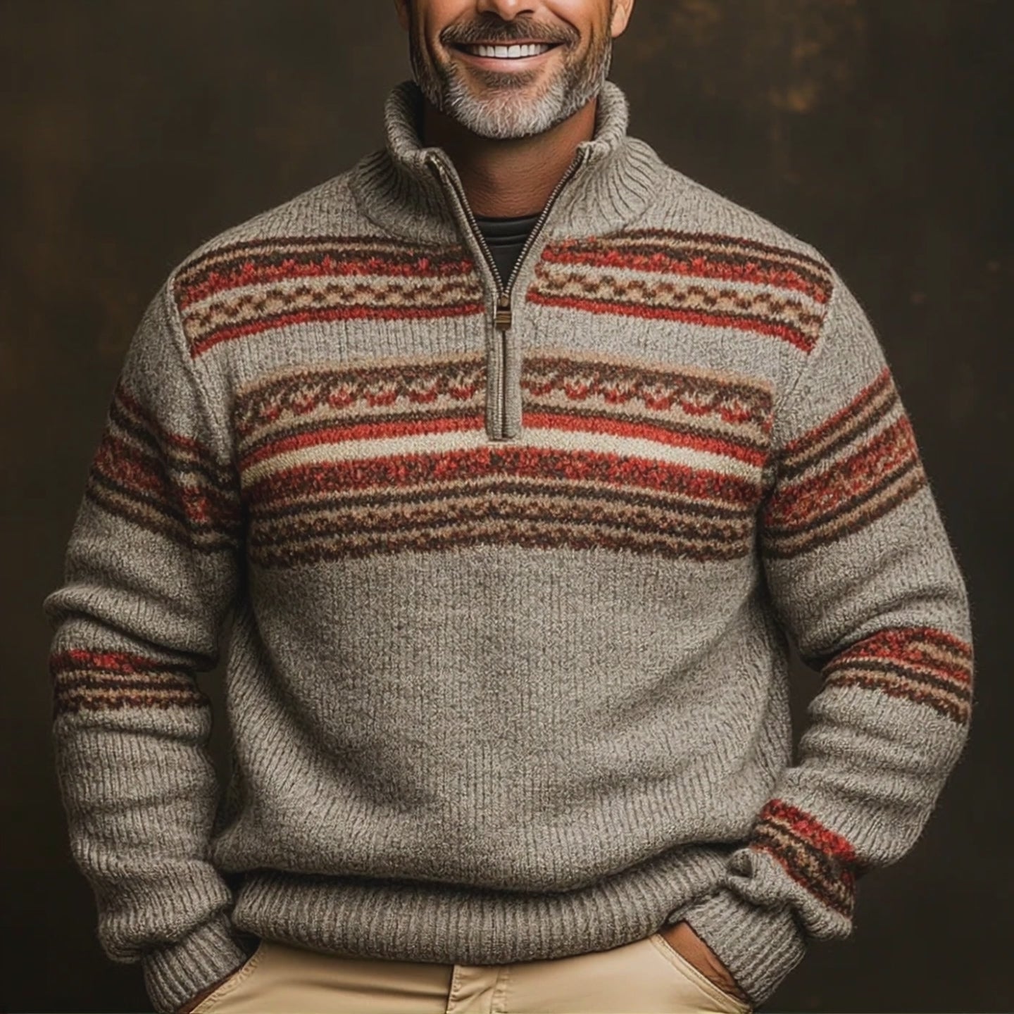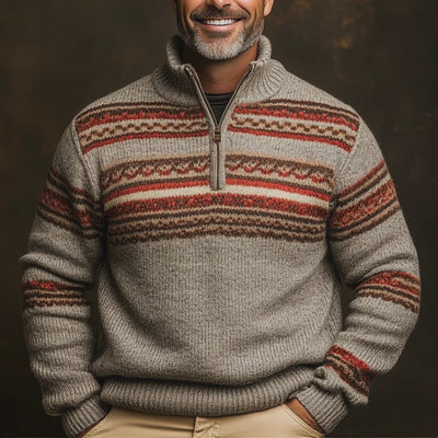 Men's Winter Retro Knitted Jacquard Cotton Yarn Half-Zip Sweater MTA2482K1P