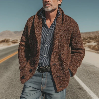 The Men's Autumn and Winter Retro Shawl Collar Knitted Mixed Color Cardigan is an essential wardrobe item for those who appreciate both style and functionality. Its distinctive design and comfortable fit make it suitable for a variety of occasions, allowing you to express your personal style effortlessly.