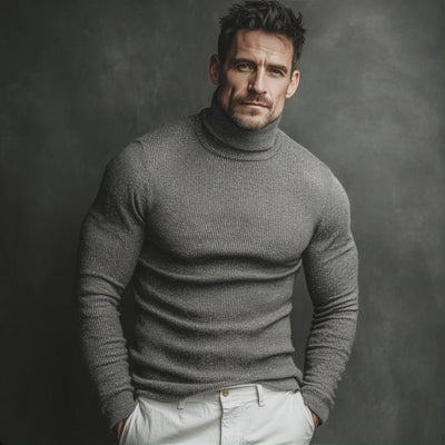 Pair this turtleneck with tailored trousers and a blazer for a refined business look. For a more casual ensemble, combine it with dark denim and a leather jacket. This sweater can also be layered under a suit for a sleek silhouette during colder months.