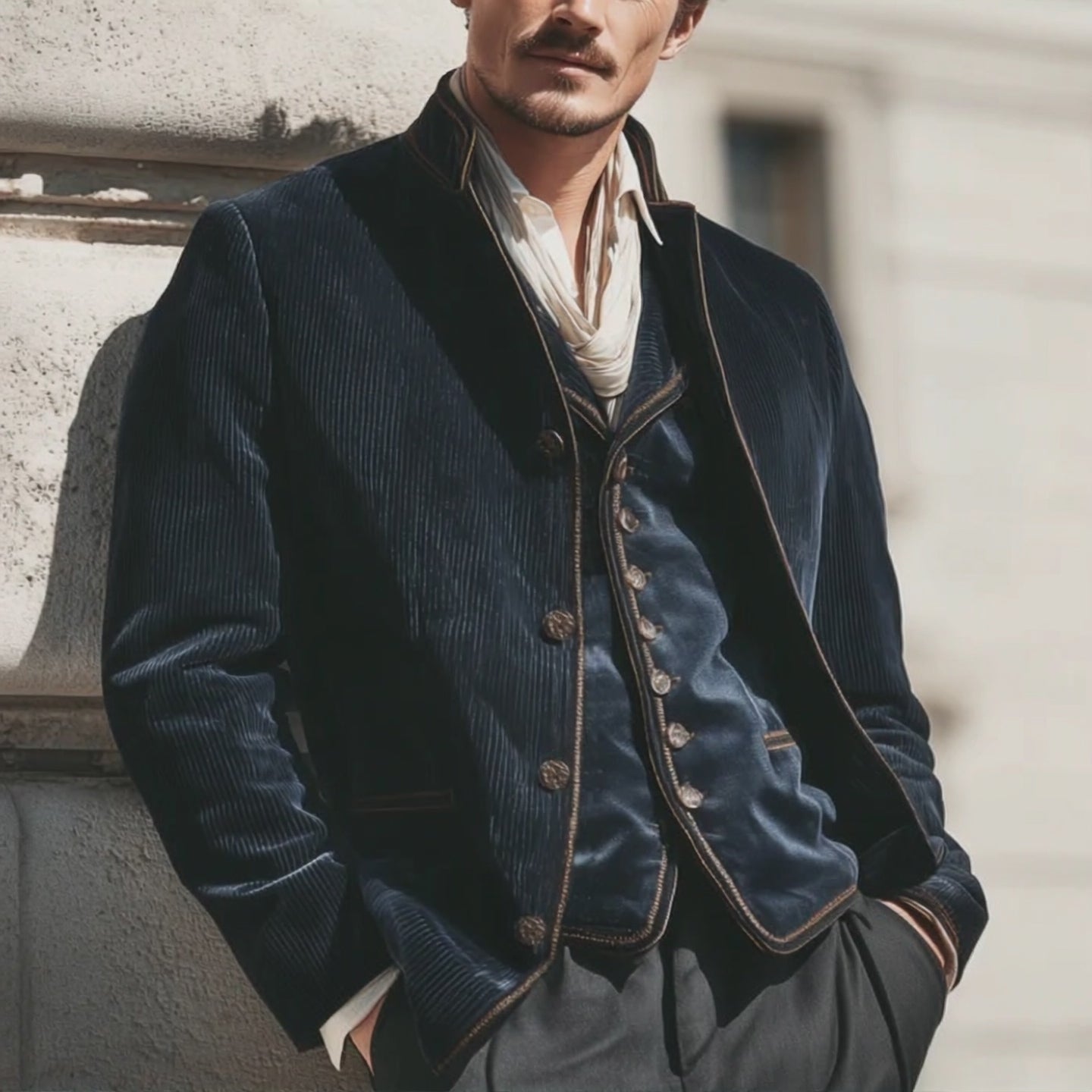 This Men's Business Stand-up Collar Corduroy Single-vent Jacket combines elegance and versatility, making it a noteworthy addition to any modern gentleman's wardrobe. Crafted from high-quality corduroy fabric, this jacket is designed to bring a touch of sophistication with a contemporary edge.