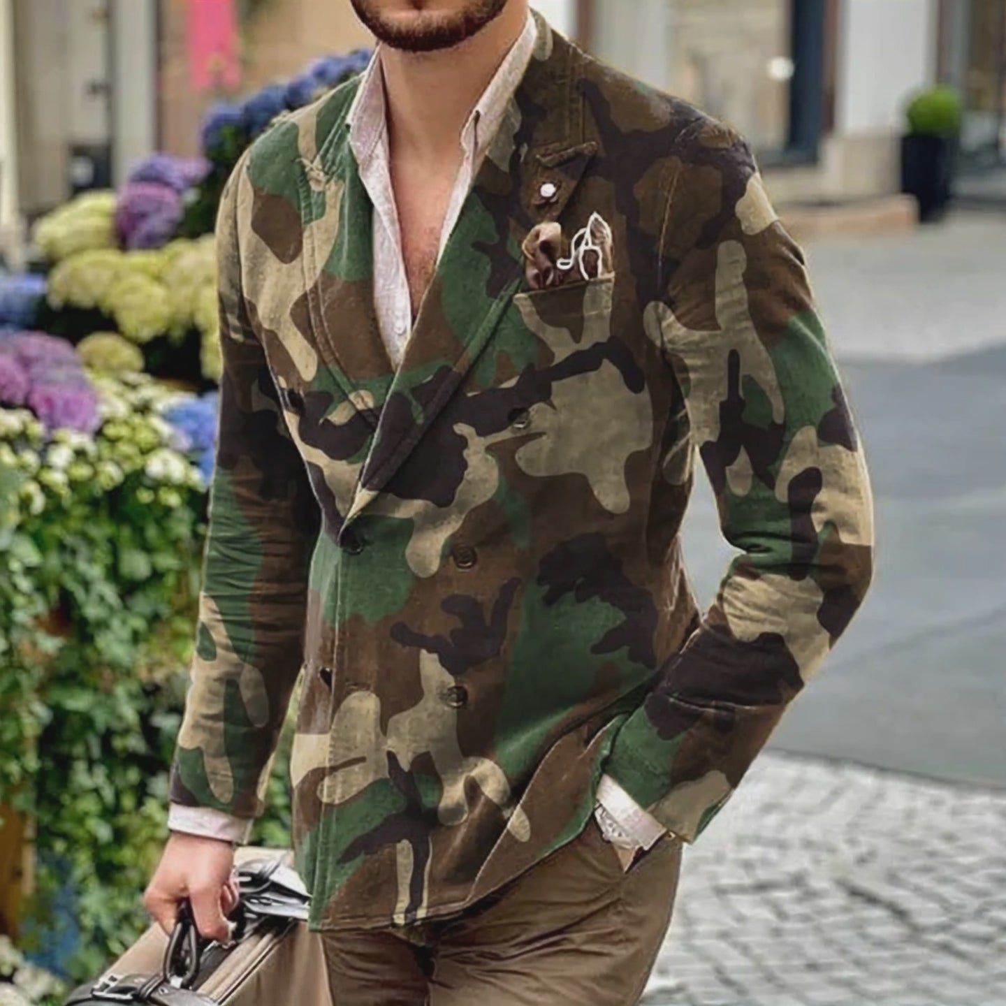 Men's Camo Peak Lapel Double Breasted Casual Blazer 56252627Z