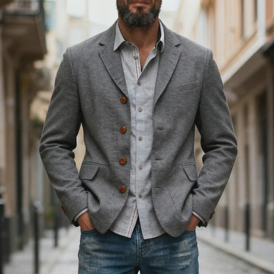Introducing the Men's Casual Cotton Blend Single-Breasted Blazer , a perfect blend of style and comfort. This blazer is crafted with an exceptional cotton blend fabric that ensures breathability and a soft touch, ideal for versatile wardrobe additions.
