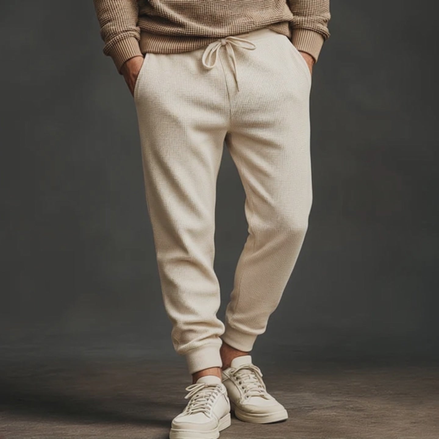 Men’s Casual Solid-Color Textured Drawstring Sports Pants