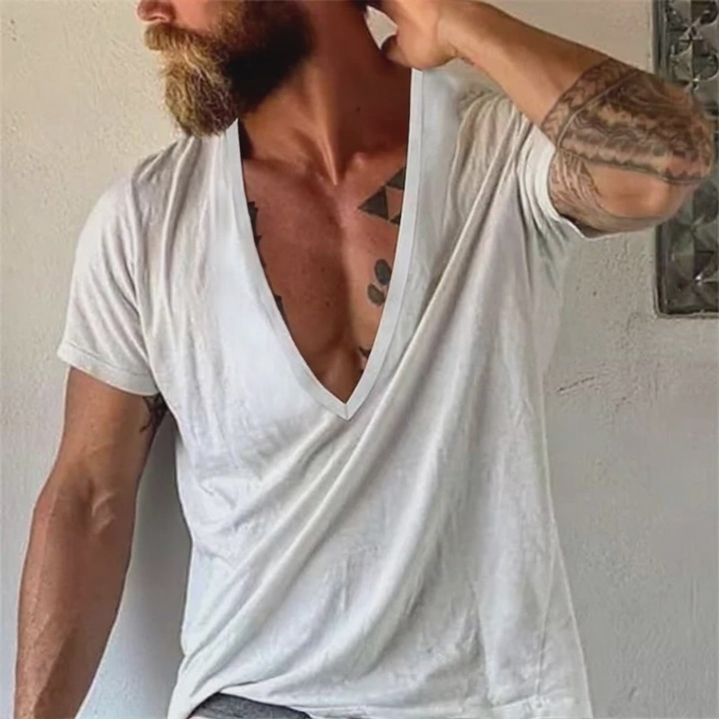 Enhance your casual wardrobe with our Men's Casual Solid Color Breathable Cotton V-Neck Short-Sleeved T-Shirt. Designed for comfort and style, this t-shirt is perfect for everyday wear, whether you’re lounging at home, heading out with friends, or enjoying a weekend adventure. The breathable cotton fabric and flattering V-neck design make it a must-have staple for any modern man's collection.