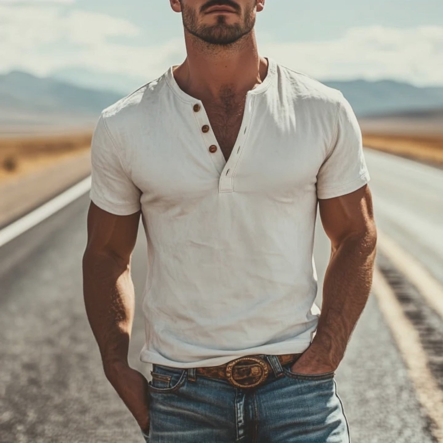 Stylish Henley Collar: The classic henley collar features a buttoned placket, adding a touch of sophistication while allowing for adjustable ventilation, perfect for warm days or layered looks.