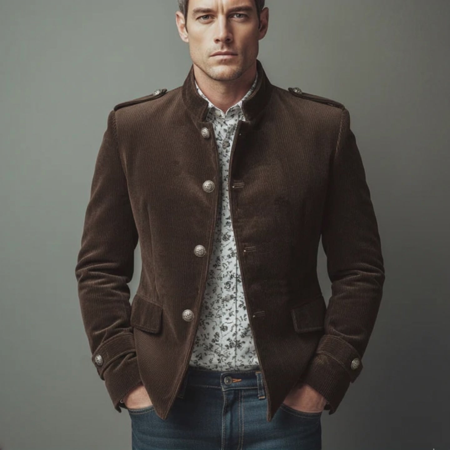 Men's Classic Casual Stand-up Collar Epaulette And Sleeve Tab Corduroy Jacket MTA2281I0K