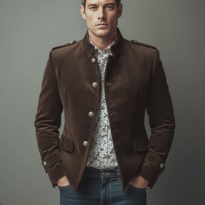 Product Name:Men's Classic Casual Stand-up Collar Epaulette and Sleeve Tab Corduroy Jacket