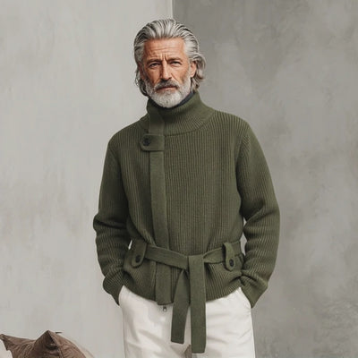 The Men’s Classic Casual Stand-Up Collar Zip-Up Knit Cardigan with belt offers a polished yet relaxed layering piece for smart-casual to casual everyday wear. Built with a comfortable knit, a stand-up collar for added warmth and structure, and a practical zip front, this cardigan delivers versatility, easy dressing, and a refined silhouette. The included belt provides adjustable shaping to suit various outfits and preferences, making it a dependable option for transitional seasons and diverse settings.