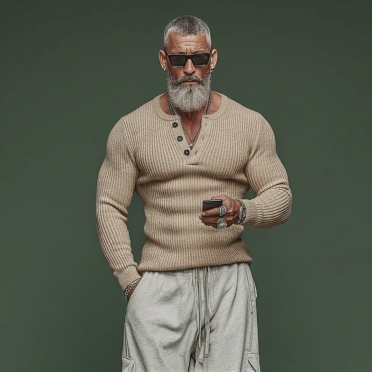 - Henley collar knit: Classic elevated neckline with a functional placket for optional venting and layered styling.