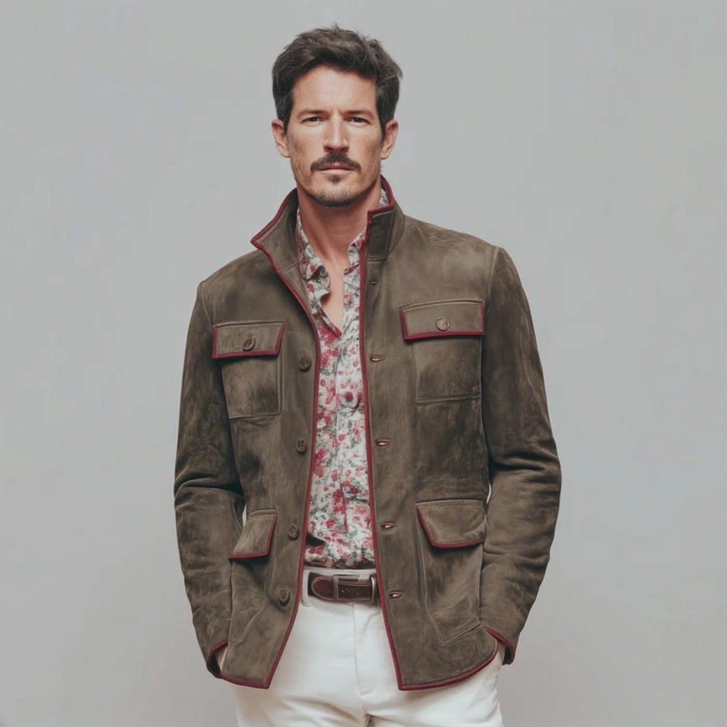 - Faux Suede Exterior: Premium suede chosen for a soft hand, natural drape, and tactile richness that enhances layering with a refined rugged edge.