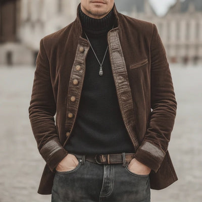 This Men's Classic Corduroy and PU Leather Stand Collar Multi-Button Jacket is the epitome of sophisticated style and modern design. Crafted from high-quality corduroy and PU leather, this jacket combines comfort with a sleek aesthetic. Its stand collar and multi-button detail contribute to a refined and contemporary look.