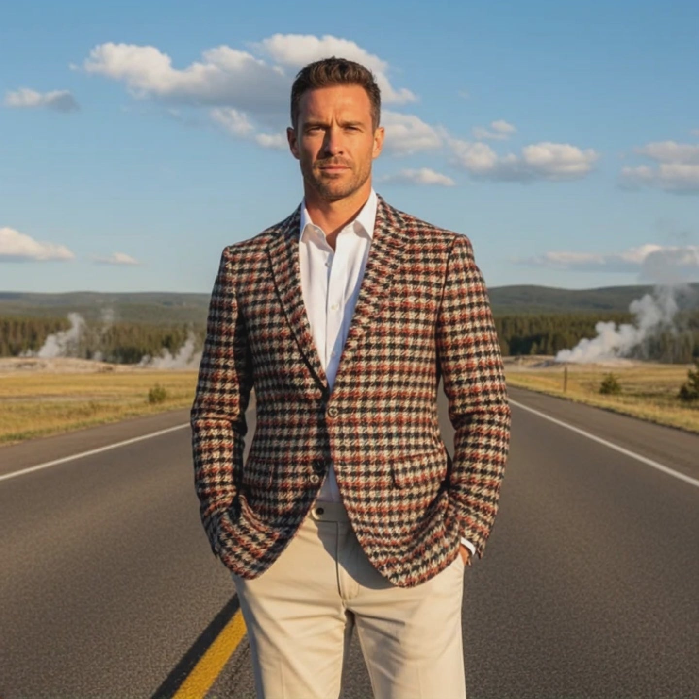 The Men’s Classic Light Business Contrast Faux Woolen Houndstooth Single-breasted Blazer delivers a sophisticated blend of texture and tailoring in a lightweight package. With its faux-woolen houndstooth fabric, clean single-breasted silhouette, and refined detailing, this blazer offers a polished, adaptable layer suitable for a wide range of occasions—from formal meetings to smart-casual events. Add this blazer to your wardrobe to achieve a sharp, contemporary look with day-to-day comfort.