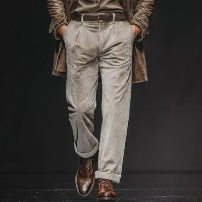 Men's Classic Light Gray Corduroy Straight-leg Casual Pants MTA0613K7U