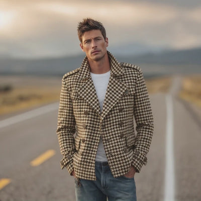 Men's Classic Retro Lapel Houndstooth Wool Double-breasted Jacket