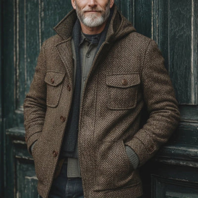 The Men’s Classic Retro Stand Collar Hooded Multi-pocket Faux Herringbone Wool Jacket fuses vintage-inspired design with practical pockets and a versatile silhouette. Its faux herringbone texture, hooded practicality, and durable construction make it a reliable, stylish option for casual days, commutes, and weekend wear, delivering timeless appeal with modern usability.