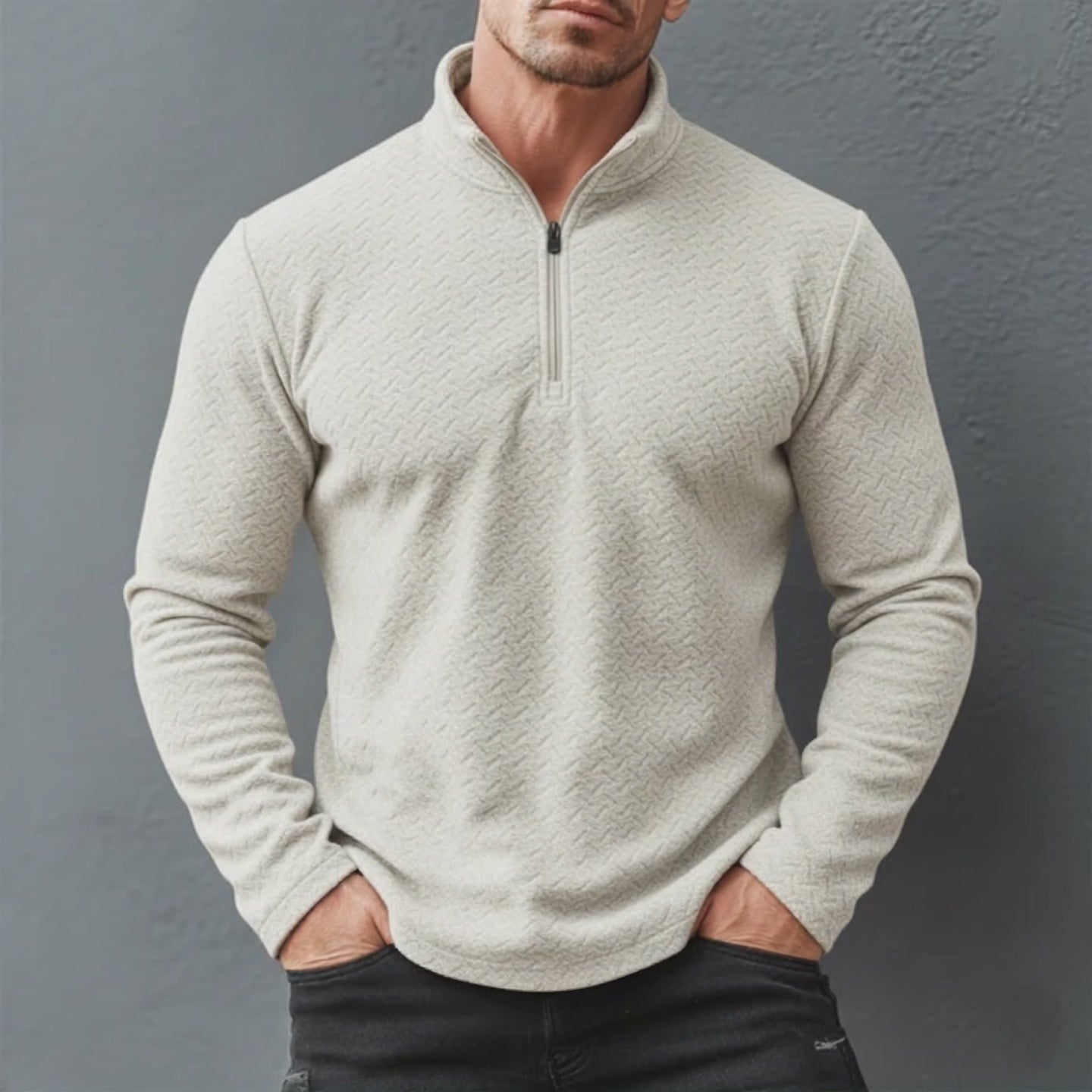 Product Name: Men’s Classic Stand Collar Zipper Textured Dralon Slim Fit Sweatshirt
