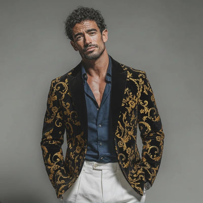Men's Classic Vintage Velvet-feel Printed Single-breasted Blazer MTA2062L5K
