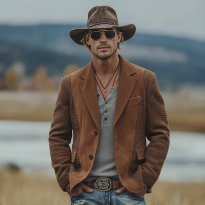The Men’s Classic Vintage Western-style Faux Suede Single-breasted Blazer offers a refined blend of Western flair and contemporary craftsmanship. With its luxurious faux suede, structured silhouette, and versatile single-breasted styling, it serves as a sophisticated outer layer for smart-casual to elevated looks across seasonal transitions.
