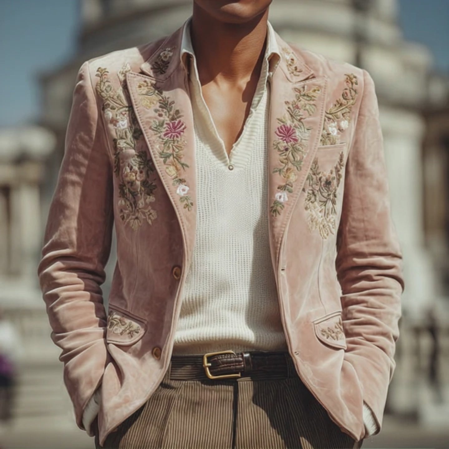 Men's Exquisite Embroidered Velvet Two-Button Blazer