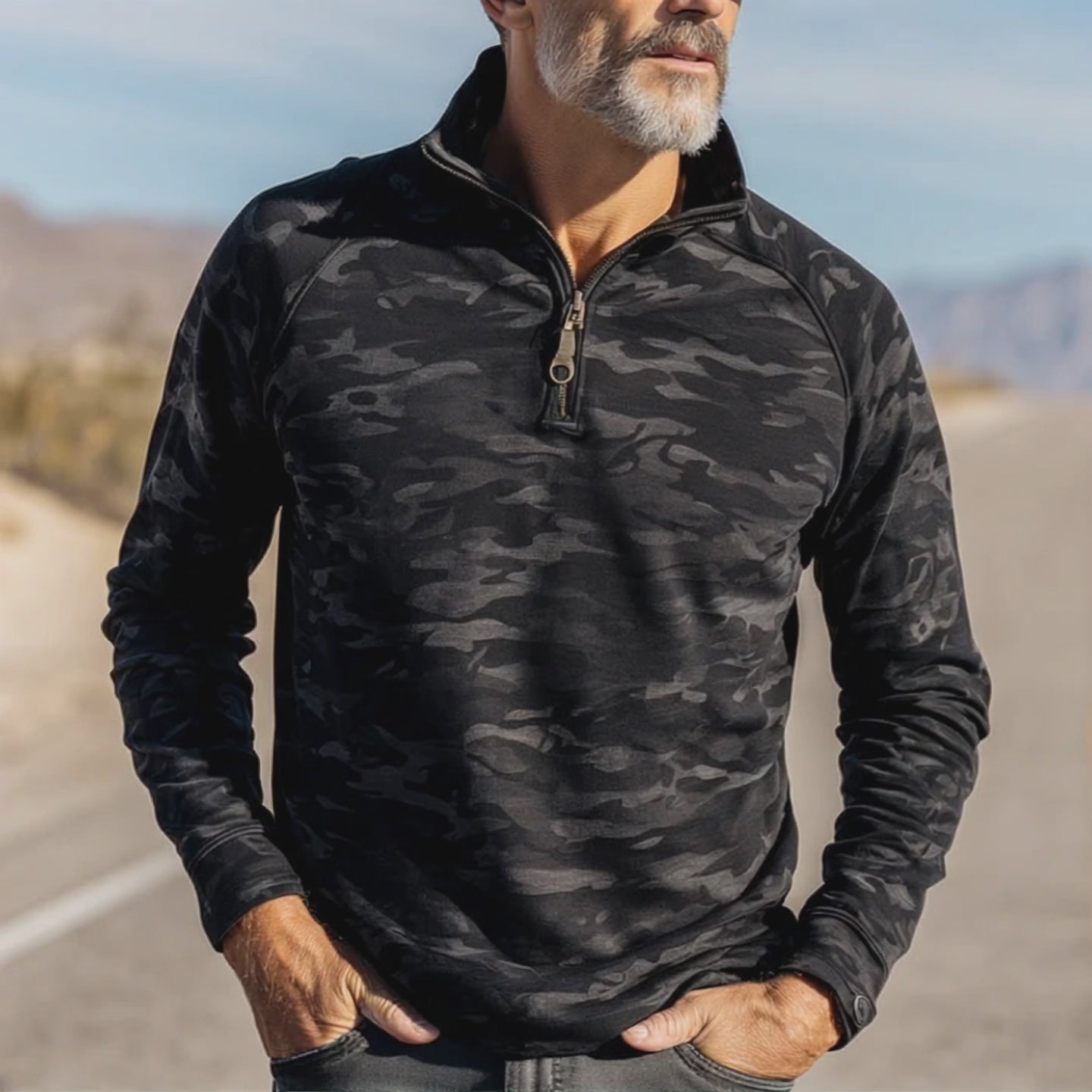 Introducing the Men's Fashion Camouflage Print Half-Zip Polo Shirt, a perfect blend of style and comfort for the modern man. The half-zip design and unique camouflage print make this shirt a standout piece in any wardrobe, offering versatility and a contemporary look that can be dressed up or down.