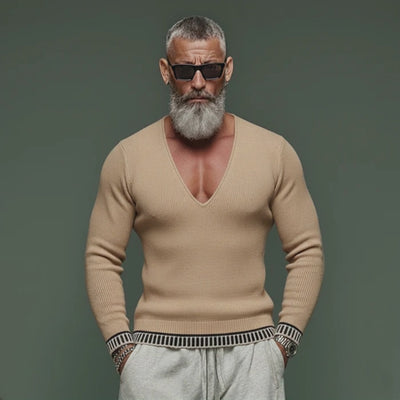 Men's Fashionable And Unique Deep V-neck Slim Fit Sweater offers a bold yet balanced take on a versatile knit staple. With its deep V-neck, slim silhouette, and durable construction, it serves as a stylish foundation piece for a modern wardrobe.