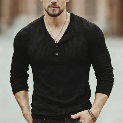 Introducing our Men's Fashionable Design Neckline Stretch Slim Fit Knit Long-Sleeve T-Shirt, crafted for the modern man who values both style and comfort. This knit t-shirt is designed with a unique neckline pattern that adds a touch of sophistication to the overall look.