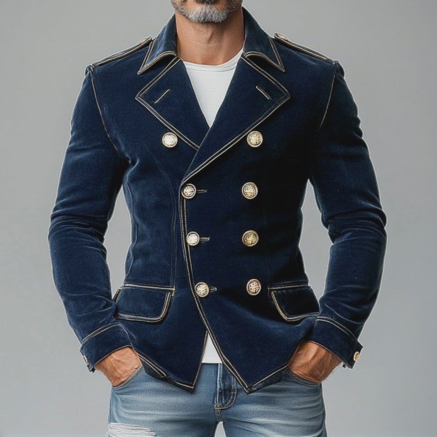 Details: Polished buttons and precise stitching add a touch of refinement.