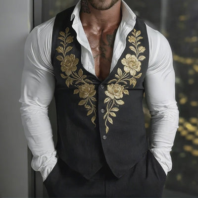 The Men's Retro Casual Cotton Floral Embroidered Collarless Button Vest is an essential piece for any fashion-forward man seeking to add a touch of elegance and retro flair to his collection. Its unique design and comfortable fit make it suitable for both casual and semi-formal settings, allowing for endless styling possibilities.