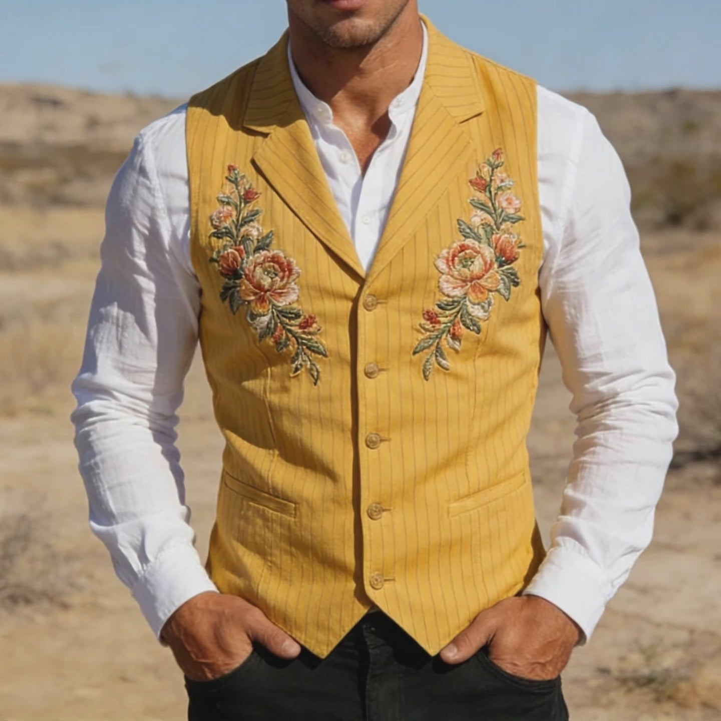The Men's Retro Casual Cotton Printed Striped Floral Embroidered Lapel Jacket is an essential piece for those who appreciate vintage aesthetics and modern flair. It's a versatile addition to any wardrobe, offering both style and comfort.