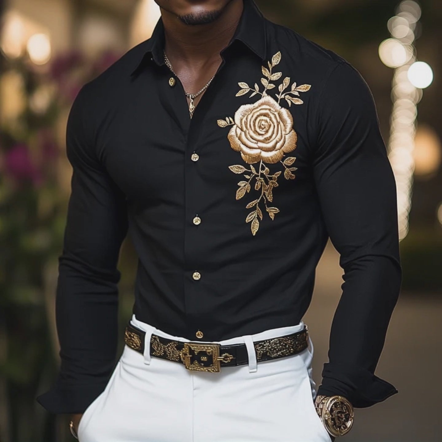 The Men's Retro Casual Floral Embroidered Lapel Long-Sleeve Shirt, is designed for those who appreciate a blend of vintage charm and contemporary style. This shirt features intricate floral embroidery that adds a touch of elegance and sophistication to your casual outfit. Its retro-inspired design complements a variety of looks, making it a versatile addition to any wardrobe.