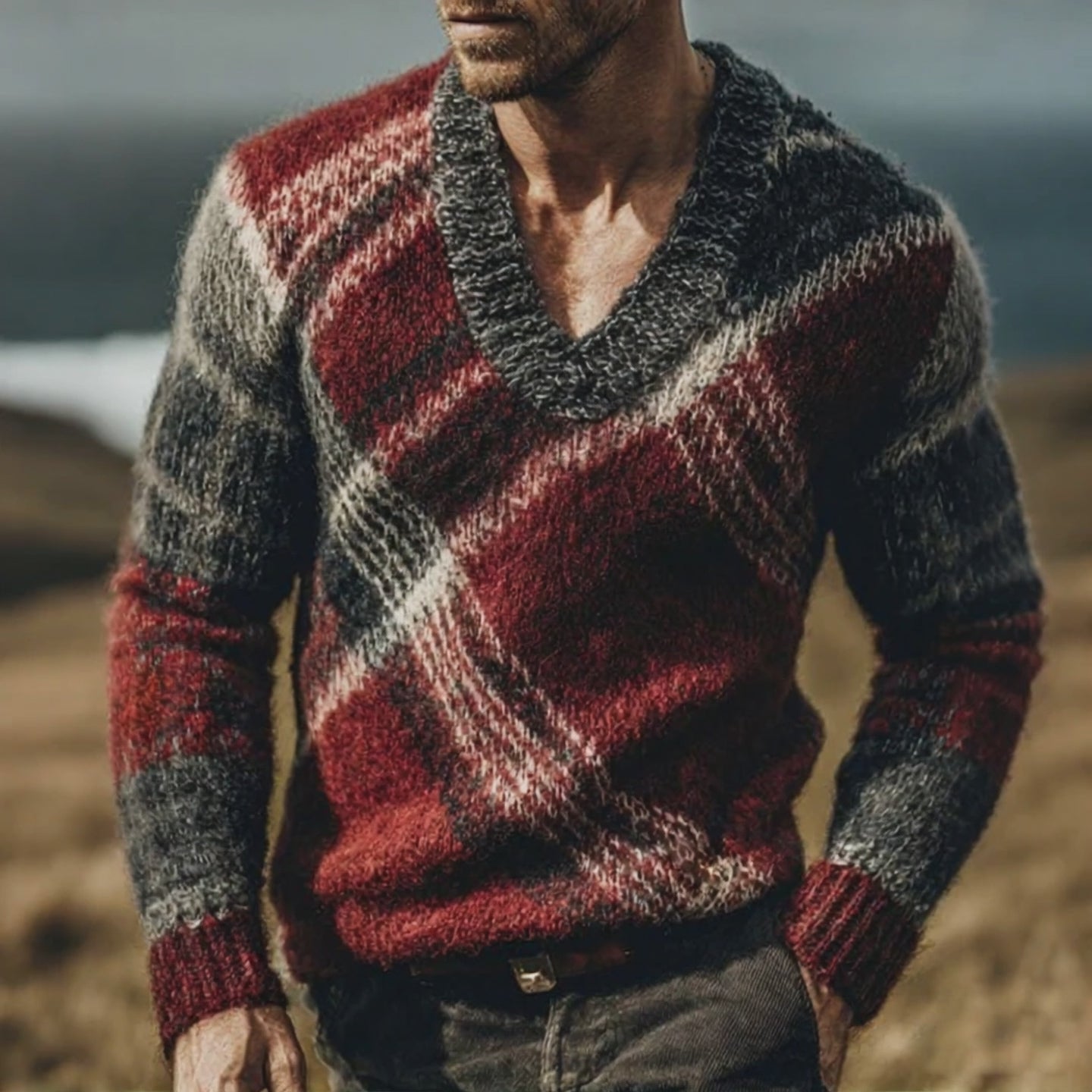 Men's Retro Casual Plaid Knit V-Neck Sweater MTA1273K6TO