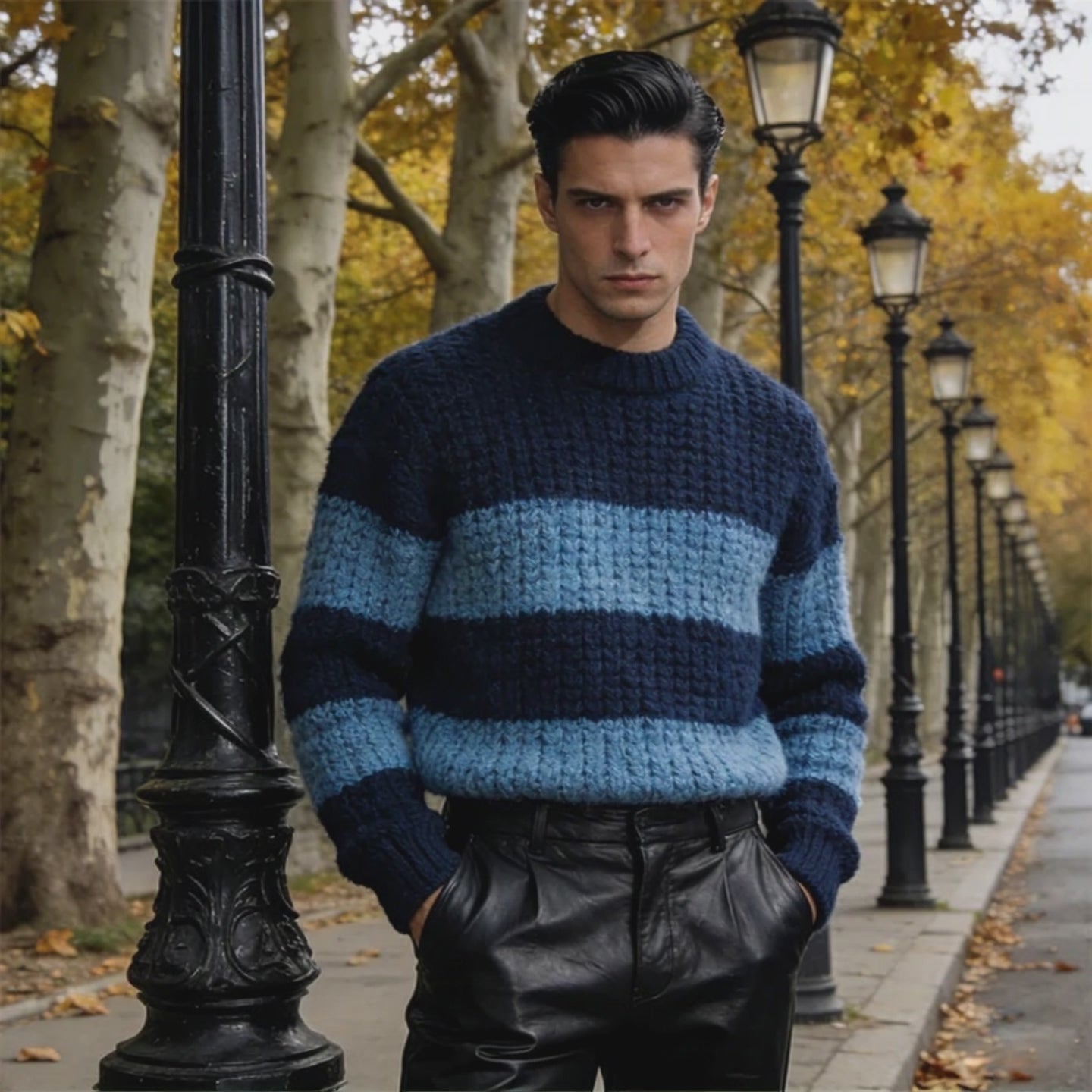 The Men's Retro Casual Striped Knit Crew Neck Sweater is a must-have for those who appreciate the blend of retro style and modern comfort. Its adaptable design makes it a wardrobe staple, ready to be dressed up or down for any occasion.