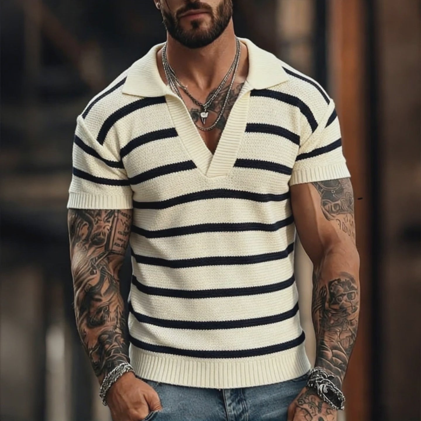 Men's Retro Casual Striped Knitted Polo Shirt MTZ2769A9TO