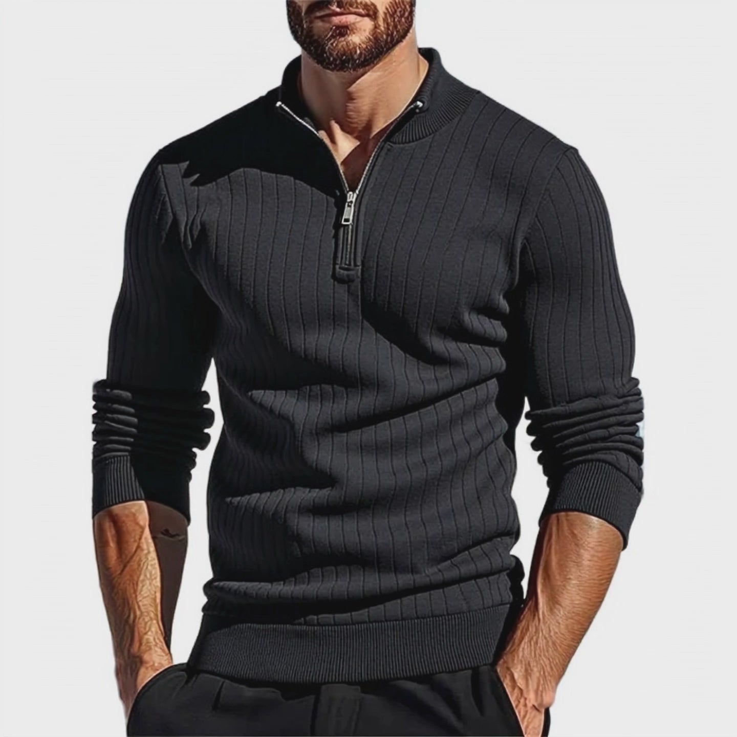 The Men's Solid Color Knit Half-zip Pullover Long-sleeved Polo Shirt is an indispensable addition to any wardrobe, offering both versatility and timeless style. Ideal for those who prioritize comfort without compromising on sophistication.