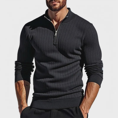 Men's Solid Color Knit Half-zip Pullover Long-sleeved Polo Shirt MTA0840K2X