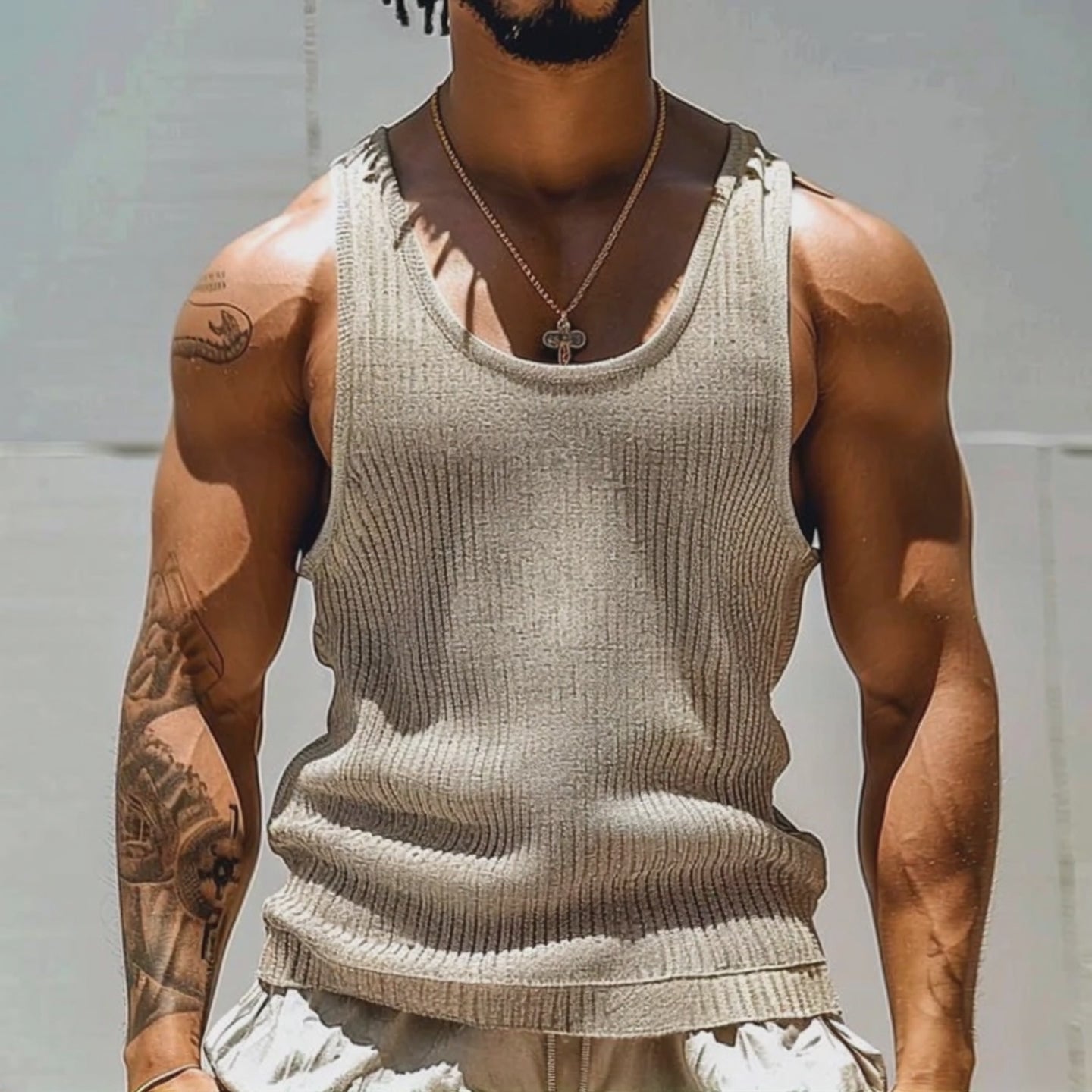 Whether you're hitting the gym or enjoying a sunny day out, the Men's Solid Color Round Neck Striped Textured Tank Top is your go-to choice for effortless style.