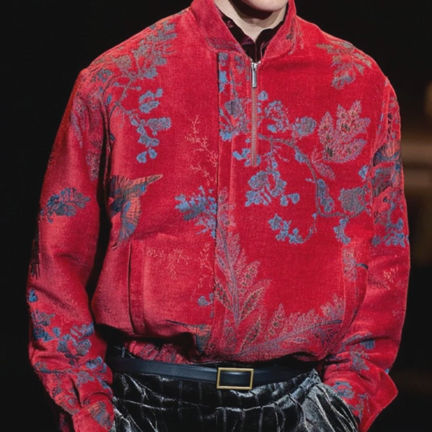 A stand-up collar provides a contemporary twist to the traditional ethnic prints, adding warmth and style around the neck area. -