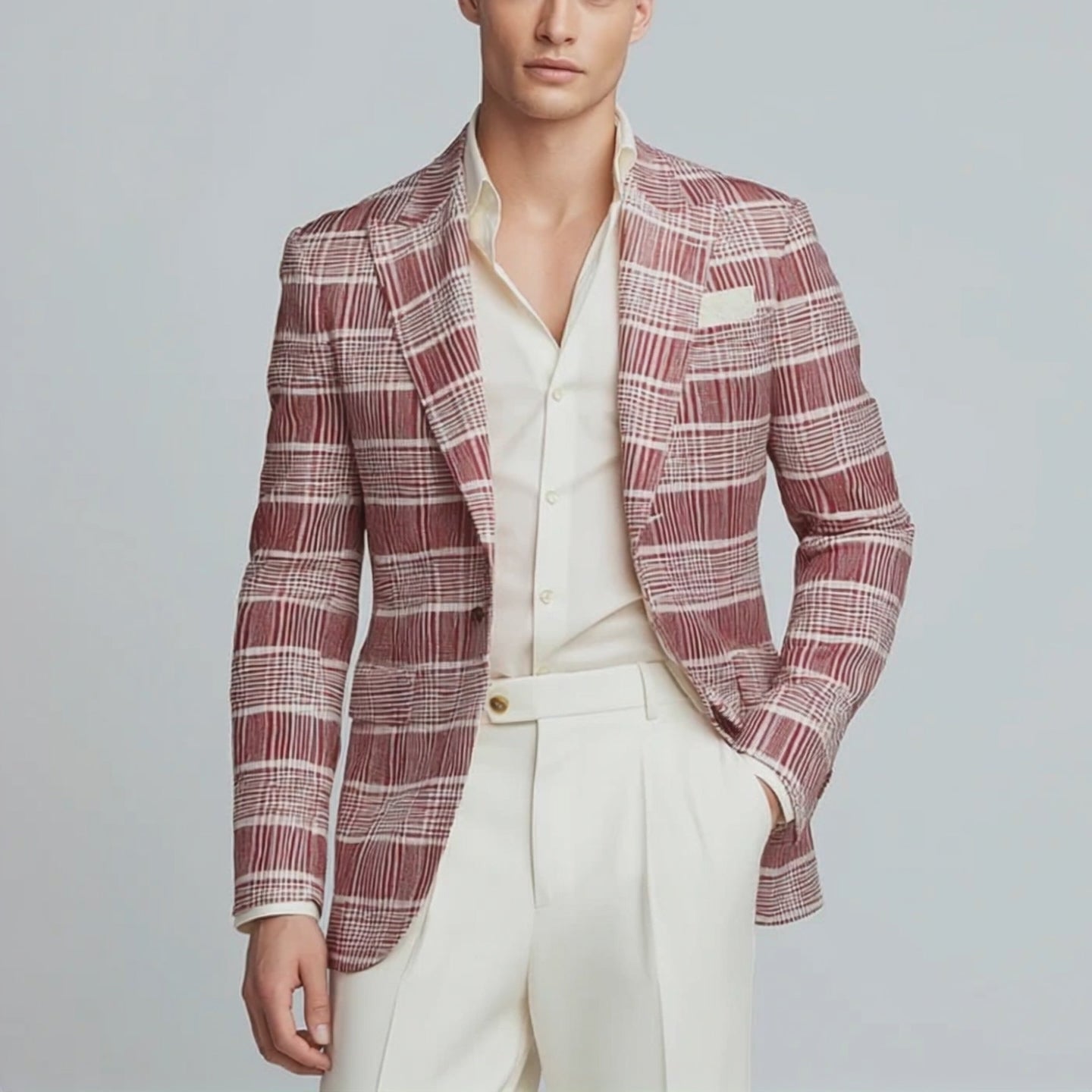 The Men's Stylish Woven Check Suit Jacket is a sophisticated yet versatile choice that combines classic tailoring with modern appeal. The jacket is crafted from premium materials, featuring a distinctive checked pattern that adds a touch of elegance to any outfit.