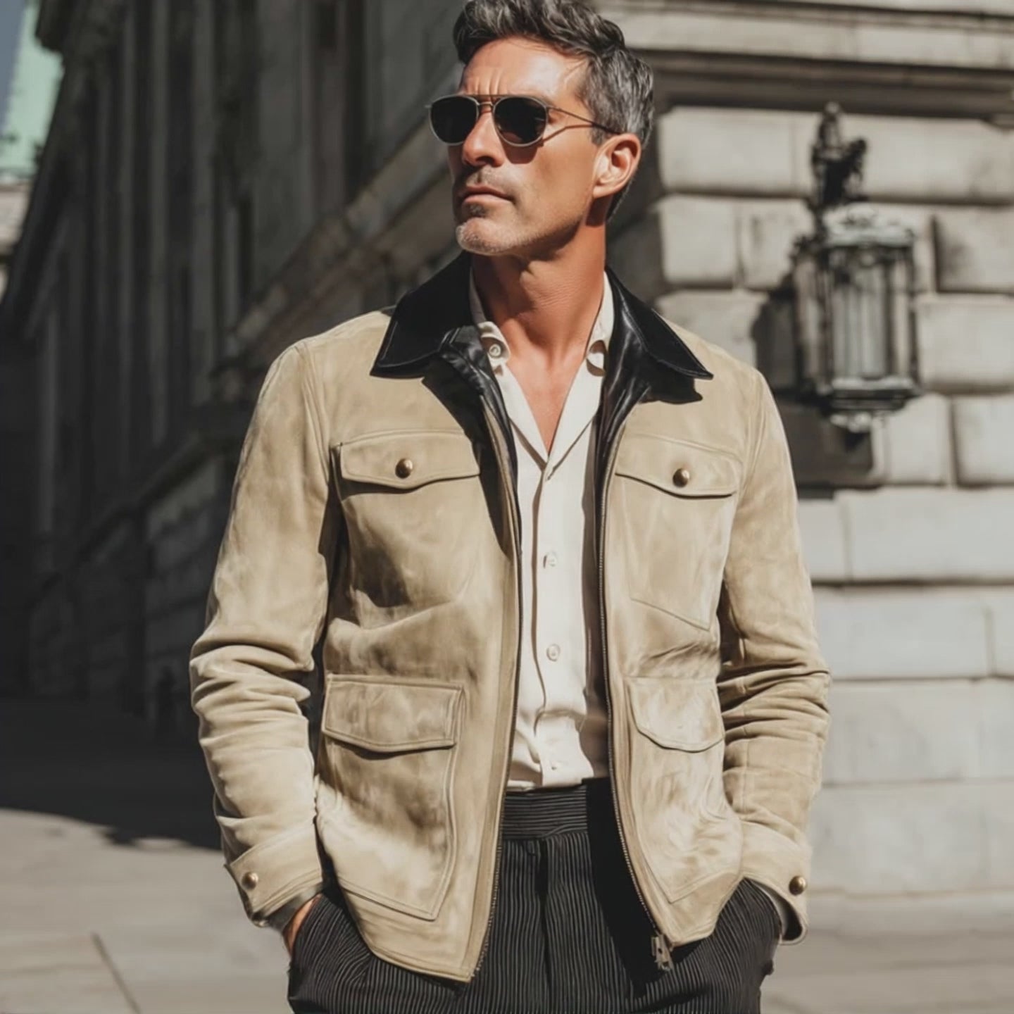 Elevate your style with our Men's Suede and PU Leather Collar Zip-up Fitted Jacket. This sophisticated jacket combines the luxurious feel of suede with the modern edge of PU leather to create a versatile and fashionable piece for any wardrobe. Ideal for both casual outings and semi-formal occasions, this jacket offers comfort, durability, and a sleek appearance that will make you stand out.