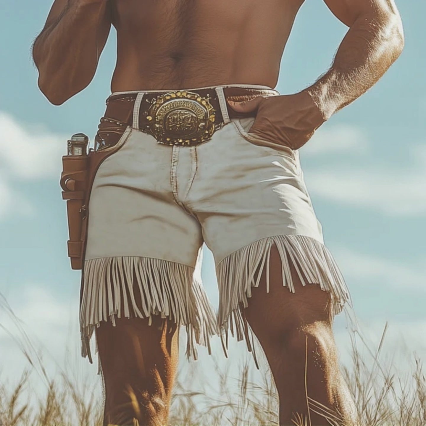 Step into summer with a blend of western charm and modern fashion through our Men's Summer Western Denim Style Fringe Shorts. These shorts are perfect for showcasing a bold, adventurous style, featuring distinctive fringe detailing that captures the essence of the Wild West. Made for comfort and durability, they offer a laid-back fit that is perfect for weekend getaways, music festivals, or any casual summer outing.