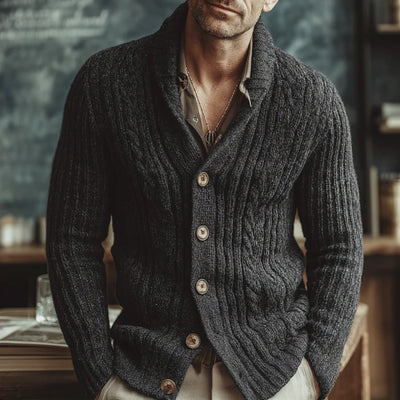 Introducing the Men's Vintage Cable-knit Button Sweater Cardigan, a piece that brings timeless elegance and warmth to your wardrobe. This cardigan combines classic design with comfort, crafted from high-quality materials to ensure both style and durability.