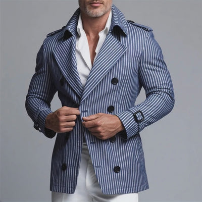 The Men's Vintage Casual Striped Double Breasted Trench Jacket is a sophisticated addition to any wardrobe, crafted to offer both style and functionality. This jacket combines a classic double-breasted design with modern vintage aesthetics, making it a versatile piece for various occasions.