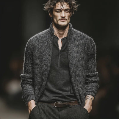 Introducing the Men's Vintage Dark Grey Stand Collar Zipper Knit Cardigan (MTA2491J5U) – a timeless addition to any gentleman's wardrobe. Carefully crafted to blend classic style with modern functionality, this knit cardigan offers an effortlessly cool vibe that's perfect for any occasion.
