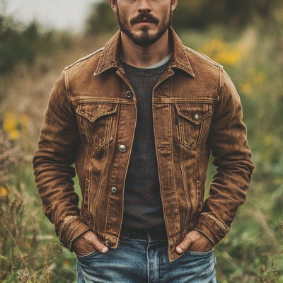 The Men's Vintage Distressed Lapel Single-breasted Western Denim Jacket is a versatile wardrobe staple that combines classic style with modern comfort. Whether you're dressing up or down, this jacket is sure to enhance your style with its timeless charm and durable craftsmanship.