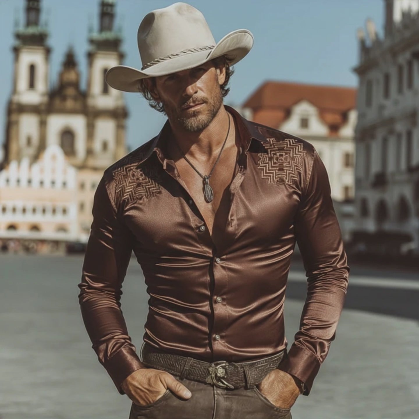 This Men's Vintage Elegant Satin Embroidered Long-sleeved Shirt combines classic vintage style with a touch of modern elegance. The shirt is crafted from luxurious satin, offering a sleek and smooth finish that enhances its sophisticated appearance. Intricate embroidery enhances the overall design, creating a statement piece for any wardrobe.