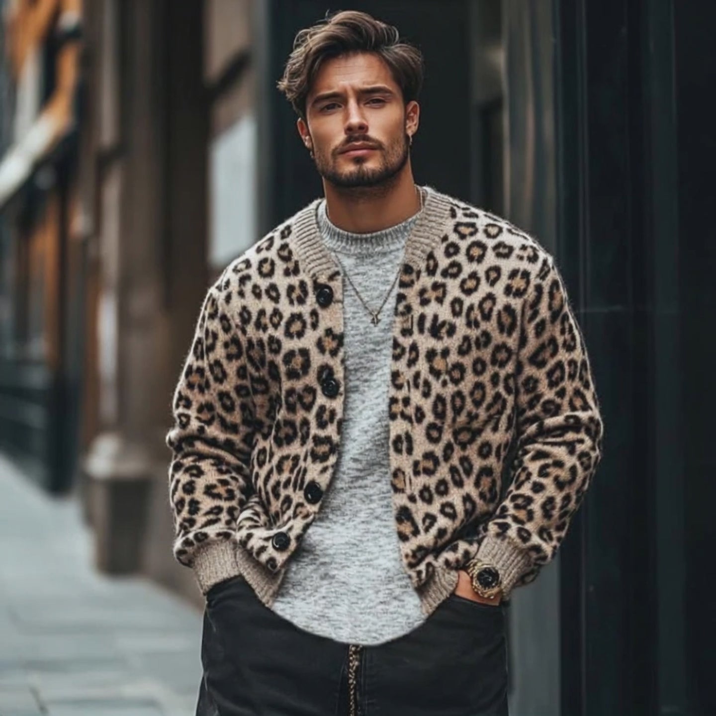 - Leopard Jacquard Pattern: The leopard print jacquard design, combined with a colorblock effect, gives this cardigan a striking, bold aesthetic. The intricate jacquard pattern adds texture and depth, making it a standout piece in your wardrobe.
